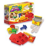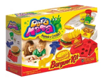 Este kit incluye moldes y herramientas que permiten modelar la masa para formar hamburguesas y otros elementos de una comida imaginaria.