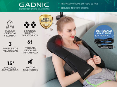 Con el Masajeador Gadnic CEDRO Shiatsu sentite como en un templo de bienestar. La sensación de masajes es muy real y vas a poder relajarte por completo. El equipo es dócil y versátil: se puede utilizar en hombros, nuca, espalda o piernas y ademas es muy fácil de usar. Cuenta con un tamaño ideal para ser transportado a donde quieras. Es ideal para evitar fatiga o futuras lesiones.