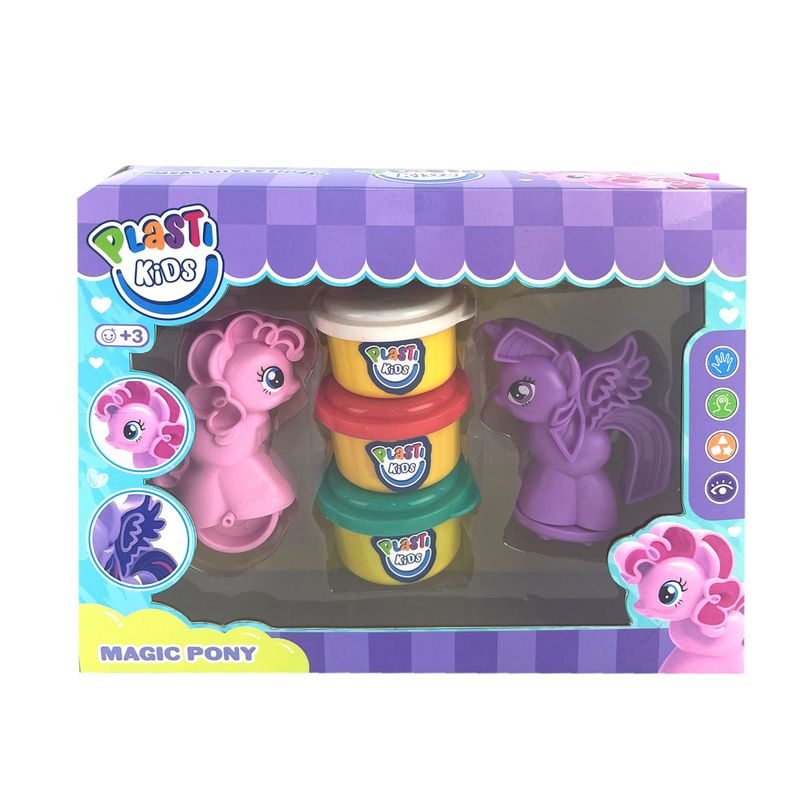 ¡Crea un mundo mágico con las Masas Plasti Kids de Pony con Accesorios! Este set incluye 2 sellos de pony y masas de colores vibrantes, perfectas para que los niños creen y personalicen sus propios ponys y figuras. Con los sellos, los pequeños pueden hacer estampas de ponys en la masa y luego moldear y decorar las figuras con los accesorios incluidos. Es una manera divertida y creativa de aprender a modelar y dar forma mientras se desarrollan habilidades motrices finas y se fomenta la imaginación.