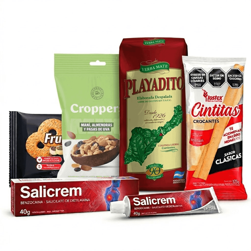 Incluye Kit de Regalo compuesto por: Crema Salicrem 80 grs + Mix de frutos Croppers 40 grs + Frutigran Granix 40 grs + Cintitas Tostex 40 grs + Yerba Playadito 50 grs