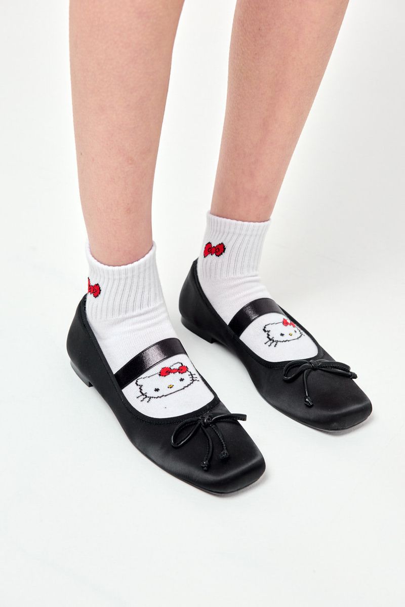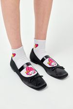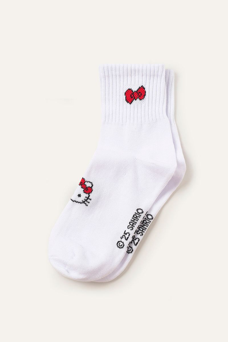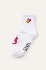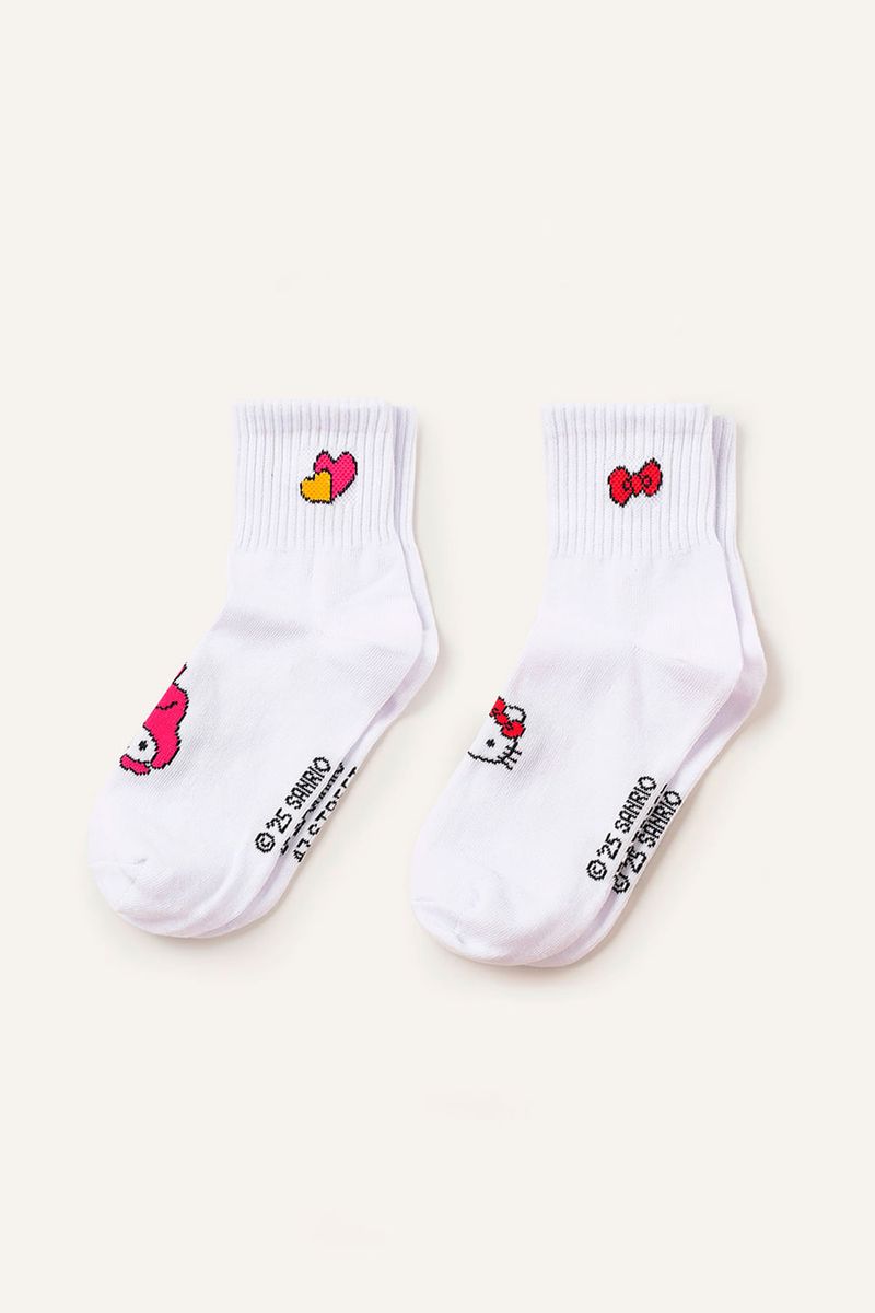 Pack de 2 pares de medias estilo tenis con bordados de Hello Kitty y My Melody en el frente, además de detalle personalizado en la parte superior y logo de la marca bordado en la planta del pie. Cómodas, suaves y elásticas, ideales para usar con zapatillas y darle un toque divertido a tus looks casuales. Este artículo cuenta con licencia oficial de Sanrio.