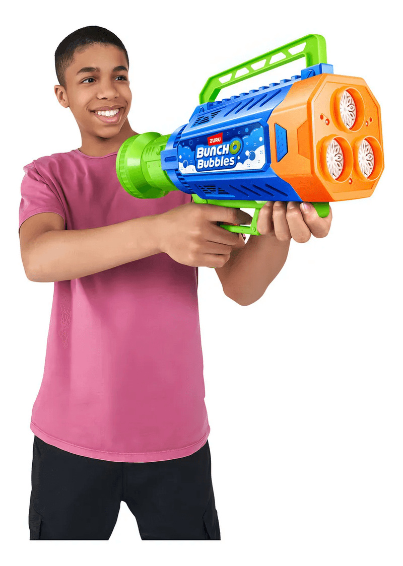 ¡Diversión a lo grande con la Mega Pistola de Burbujas Zuru 7697! Crea una espectacular lluvia de burbujas brillantes mientras las luces integradas iluminan cada disparo. Ideal para fiestas, juegos al aire libre y momentos mágicos llenos de color y alegría.