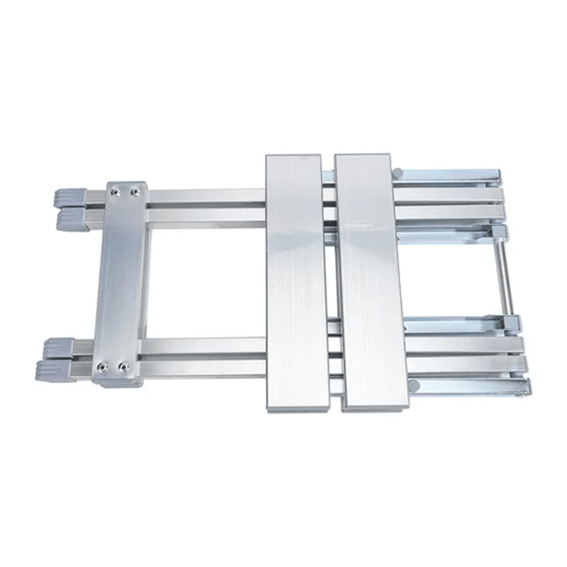 - Bancos de aluminio con patas reforzadas y tacos antideslizantes.