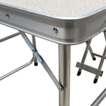 - Mesa con tablero de MDF antideslizante y estructura de aluminio resistente.
