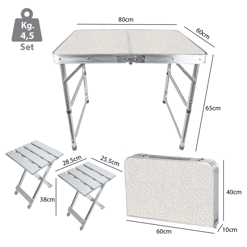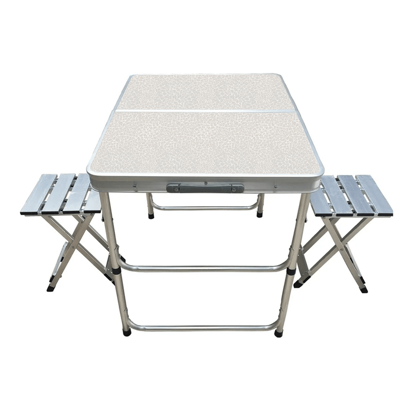 Ideal para tus salidas al aire libre, este set compacto y funcional incluye una mesa tipo maletín y dos bancos de aluminio. Su diseño práctico permite un armado rápido y un transporte sencillo, perfecto para camping, picnic, playa o jardín.