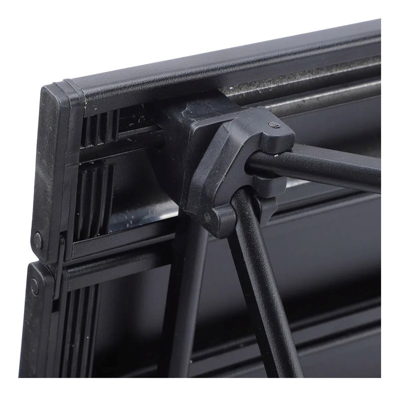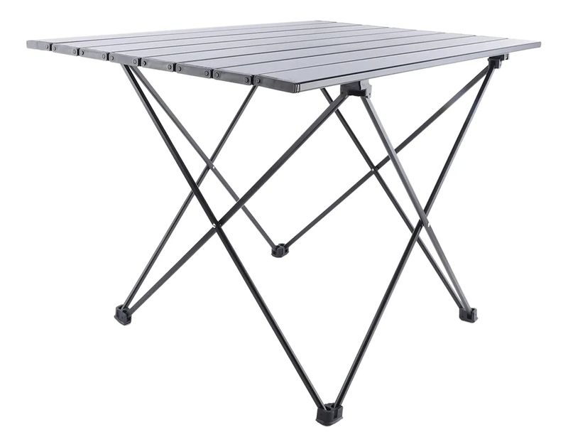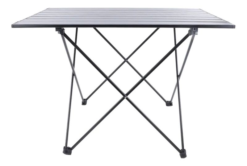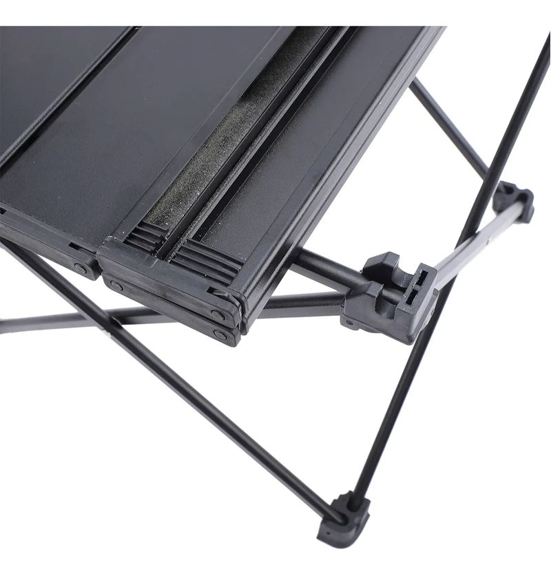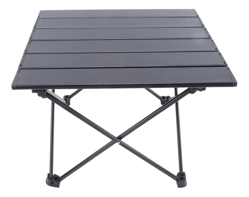 Fabricada en aluminio de alta calidad, su diseño en color negro no solo aporta elegancia, sino también resistencia y ligereza. Su función plegable facilita el transporte y almacenamiento, convirtiéndola en un elemento práctico para tus viajes, picnics o campamentos.