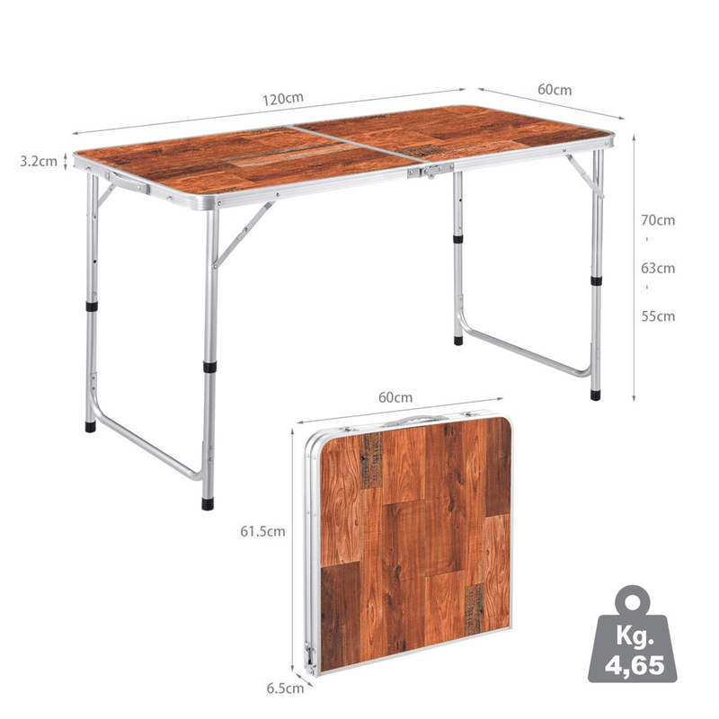 Mesa plegable de altura ajustable la mesa plegable multifuncional se puede utilizar de diversas maneras: en ferias, fiestas al aire libre, durante el campismo, para empapelar. Es ligera y fácil de transportar, además, se ensambla rápidamente y su altura es ajustable.