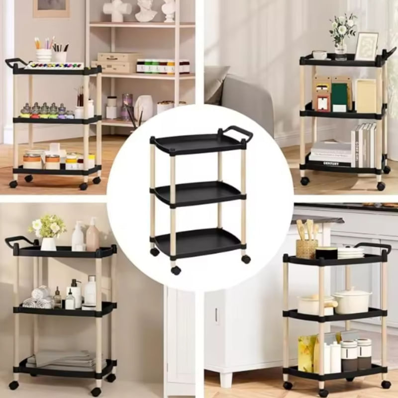 Este carrito se adapta a diversas necesidades domésticas, como carrito de cocina, carrito de baño, carrito de servicio, estantería, carrito utilitario, carrito para libros, carrito para bebidas, carrito para cosméticos, etc.