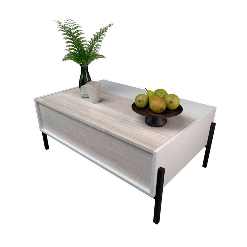 Su estructura esta confeccionada con MDP (Aglomerado de alta densidad) impregnado de resina de melamina de alta resistencia y patas metálicas que lo convierten en una mesa de living resistente, robusta y duradera en el tiempo.
