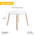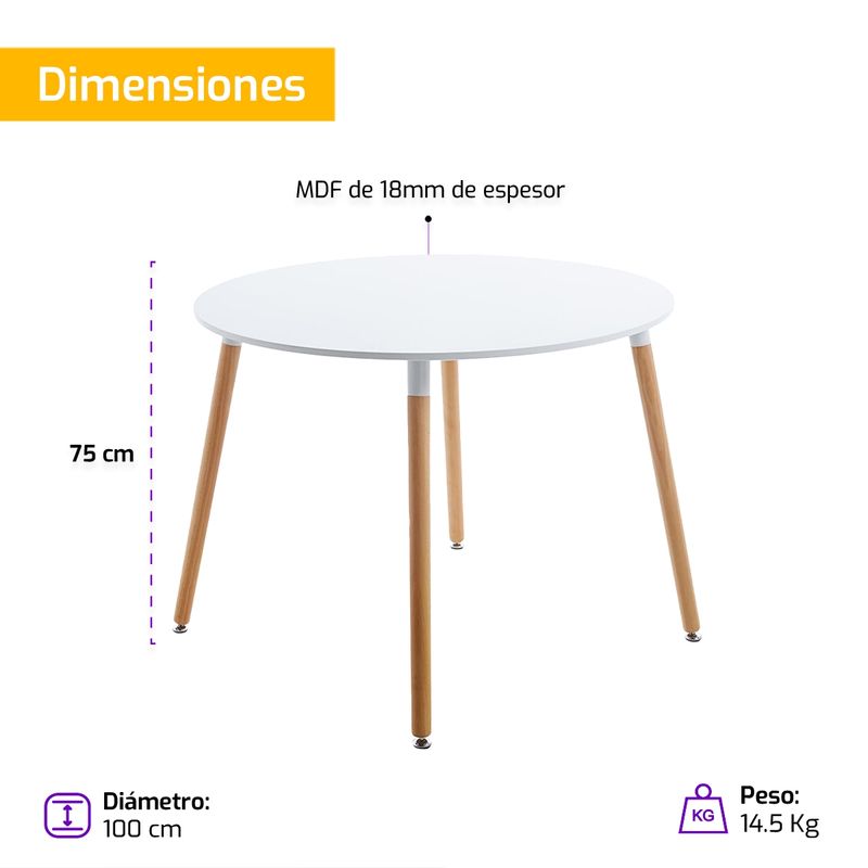 Mesa Comedor Redonda Blanca Nórdica Eames 100cm