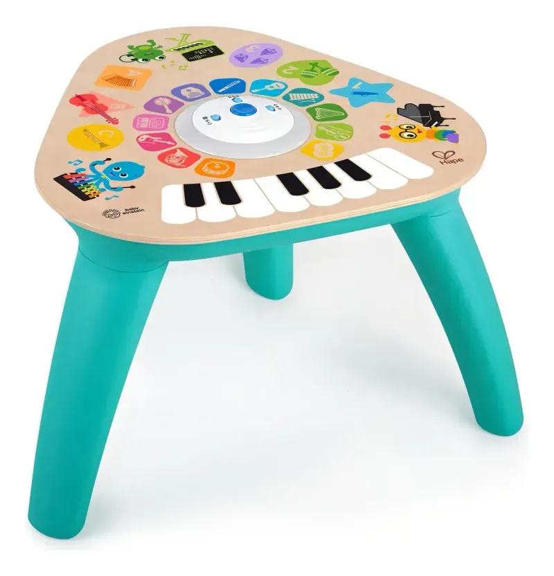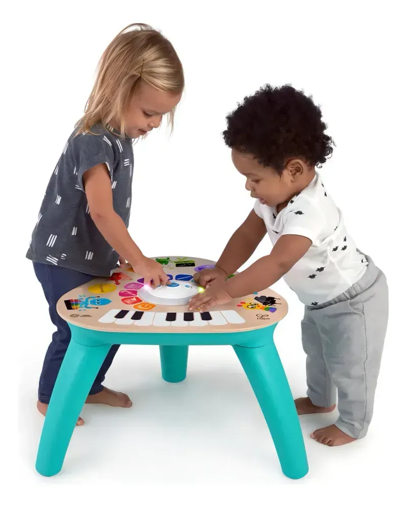 Desde botones que emiten sonidos y luces hasta divertidos juegos de apilamiento, esta mesa musical es una excelente manera de fomentar la coordinación mano-ojo y el aprendizaje temprano.