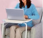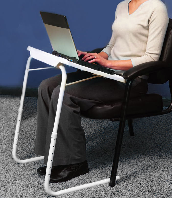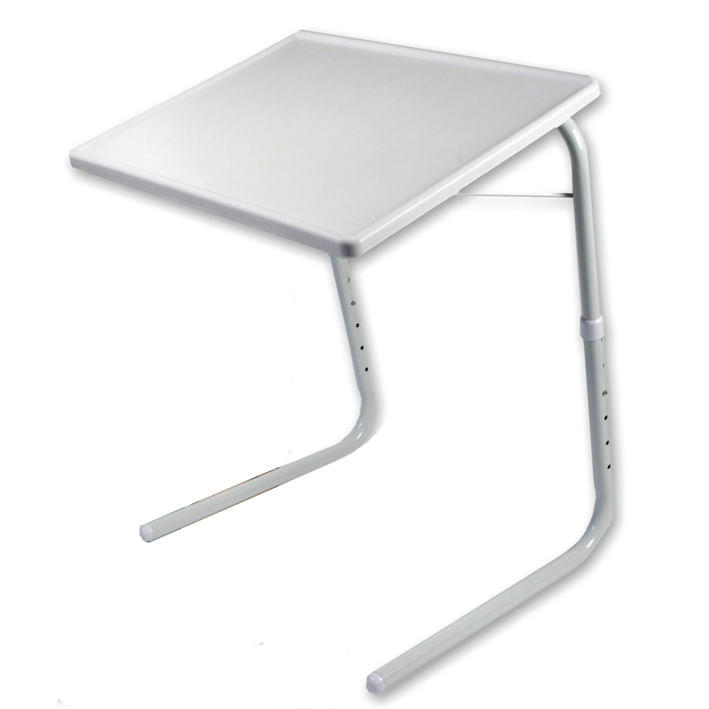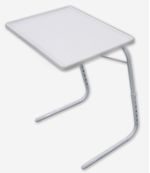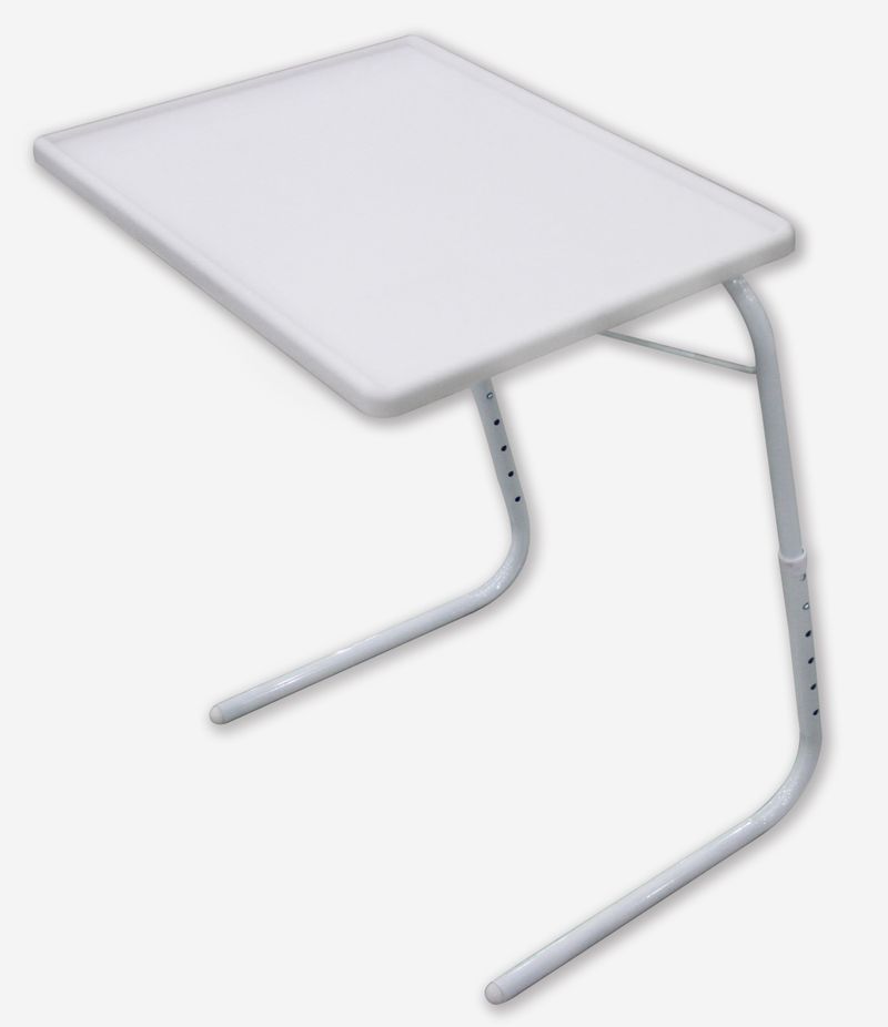Mesa plegable de color blanco, fácil de guardar y de transportar.