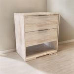 Esta mesita robusta, pero elegante, luce dos cajones con guías metálicas y un nicho inferior para un almacenamiento sencillo y accesible. Con manijas de aluminio y elaborada en melamina de 15 mm, la Mesa de Luz Reflex combina funcionalidad y estilo, siendo el complemento perfecto para tu dormitorio.