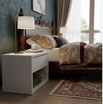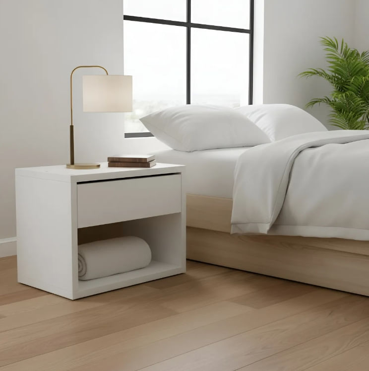 Fabricada en melamina de alta calidad, esta mesa de luz es resistente y fácil de mantener. Su único cajón, con guías de madera, proporciona un espacio adicional para guardar objetos personales, manteniendo el área ordenada y libre de desorden.