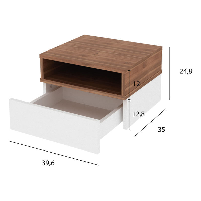 Mesa de luz flotante, ideal para ubicar según tus necesidades y optimizar espacios. Contiene un cajón y un estante para organizar tus pertenencias como más te guste.
