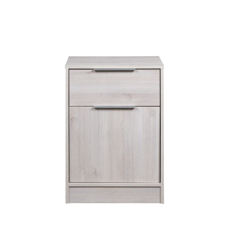 La Mesa de Luz moderna color Pino Aland es perfecta para darle onda y orden a tu cuarto, con su puerta y cajón.