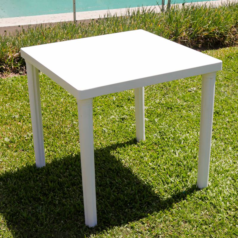 Mesa compuesta de material polipropileno con patas encastrables y de fácil armado.