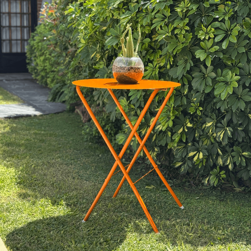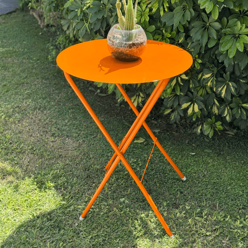 La mesa plegable Kai es ideal para balcones, patios, jardines, bares o restaurantes. Fabricada en caño de 1"" con tapa de chapa de 2 mm, combina un diseño minimalista con robustez. Su sistema de plegado permite guardarla y transportarla fácilmente.