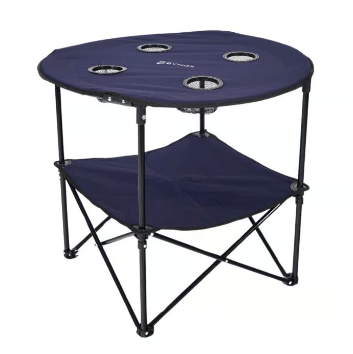 Mesa plegable de camping playa Bynox con posa vasos azul FI-MSPLBA-AZ