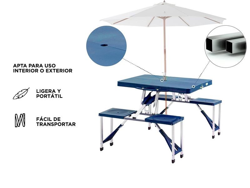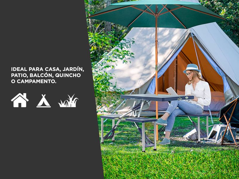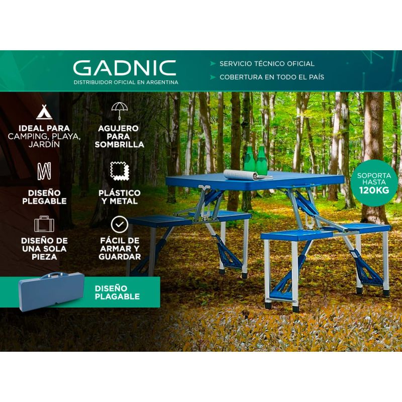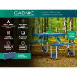 Si planea ir a la playa, acampar o pescar, asegúrese de tener un lugar donde sentarse. La Mesa Plegable Gadnic es ideal para picnic al aire libre o jardín y para cuando necesites una mesa y asientos adicionales. Cuenta con una mesa compacta con asientos de banco para cuatro que puedes llevar a cualquier lugar. Se puede plegar en una maleta fácil de transportar cuando se pliega para que el almacenamiento sea rápido y fácil. El tamaño compacto de almacenamiento y la capacidad de ser configurado en cualquier lugar hacen de esta mesa un imprescindible para disfrutar de la diversión al sol.