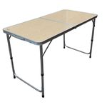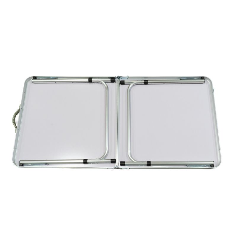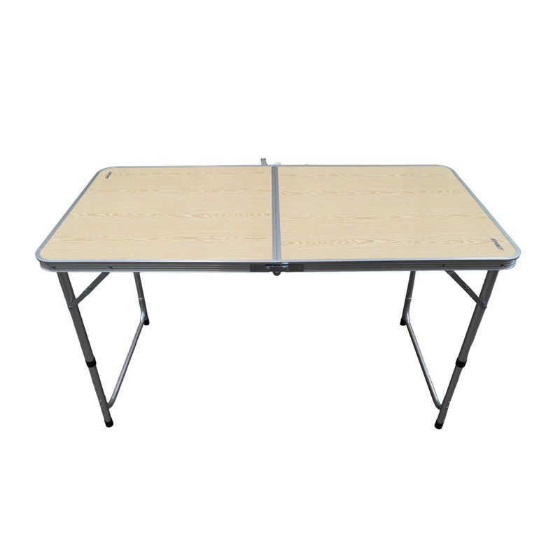 Ligera, práctica y funcional, esta mesa es la compañera ideal para camping, reuniones o eventos al aire libre. Su estructura combina perfiles de aluminio y patas de acero, ofreciendo una excelente resistencia con bajo peso, lo que facilita su transporte.