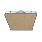 El sistema plegable permite guardarla ocupando muy poco espacio, mientras que su superficie en tono madera oscura, madera clara o plateada aporta un estilo natural y elegante, adaptable tanto a entornos outdoor como al hogar.