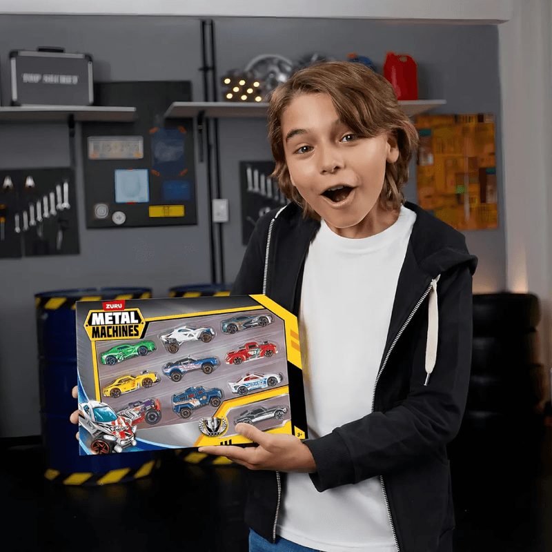 ¡Son rápidos, son malos, son máquinas de metal! Corre a través de un mundo en constante expansión de los mejores autos fundidos a presión y conjuntos de pistas de acción extrema. Metal Machines te trae la acción directamente a ti y a tus amigos. Cada paquete presenta un automóvil de diseño cromado único.