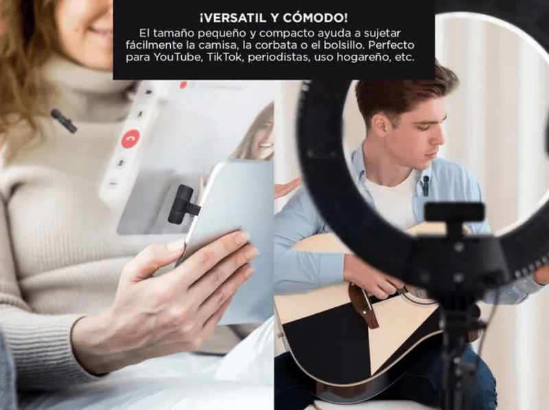 El Mini Micrófono Inalámbrico Gadnic es portátil de pinza para que puedes llevarlo a cualquier parte. La recepción es clara y la calidad de audio es alta. Sólo tienes que engancharla y ya está lista para funcionar, sin necesidad de cables, perfecta para grabar en exteriores. El tamaño pequeño y compacto ayuda a sujetar fácilmente la camisa, la corbata o el bolsillo. Perfecto para YouTube/Facebook Live, TikTok, videobloggers, periodistas móviles, creadores de contenidos, profesores, cineastas, etc.