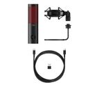 Micrófono USB HyperX QuadCast 2, cable de USB-C a USB-C de 3 m, adaptador de USB-C a USB-A, guía de inicio rápido.