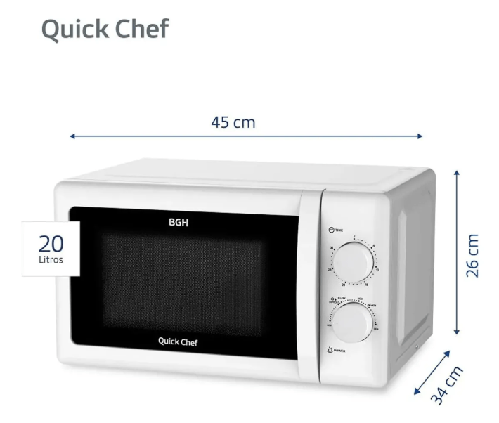 El microondas BGH B120M20I es la solución ideal para tu cocina si buscás calentar y cocinar de forma rápida y sencilla. Con su capacidad de 20 litros y función monofunción, ofrece la practicidad justa para el uso diario en el hogar, la oficina o un espacio reducido.