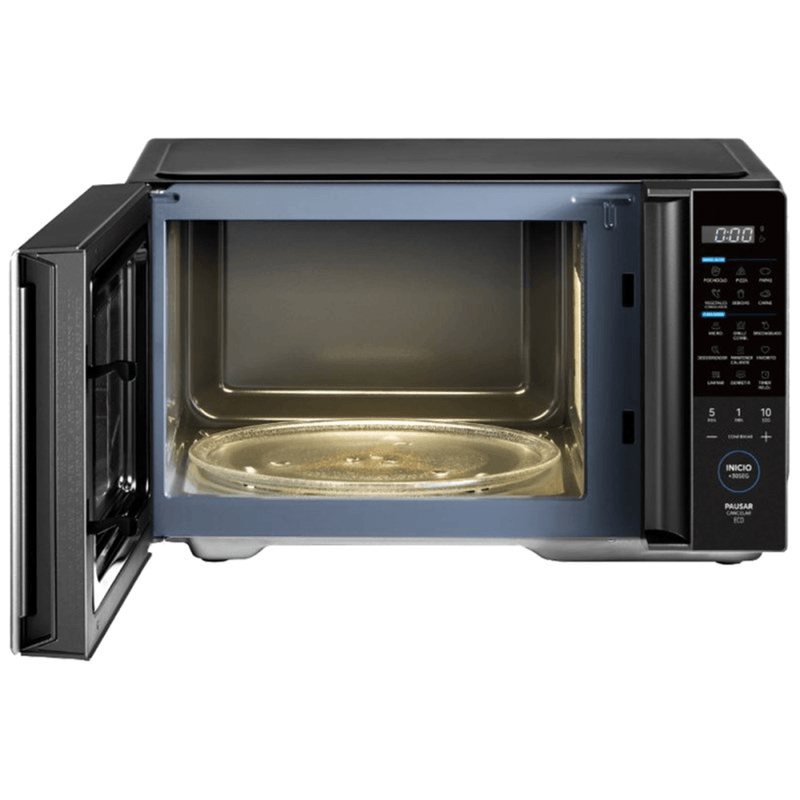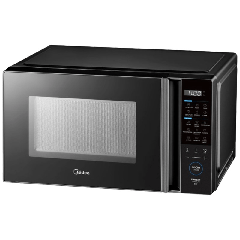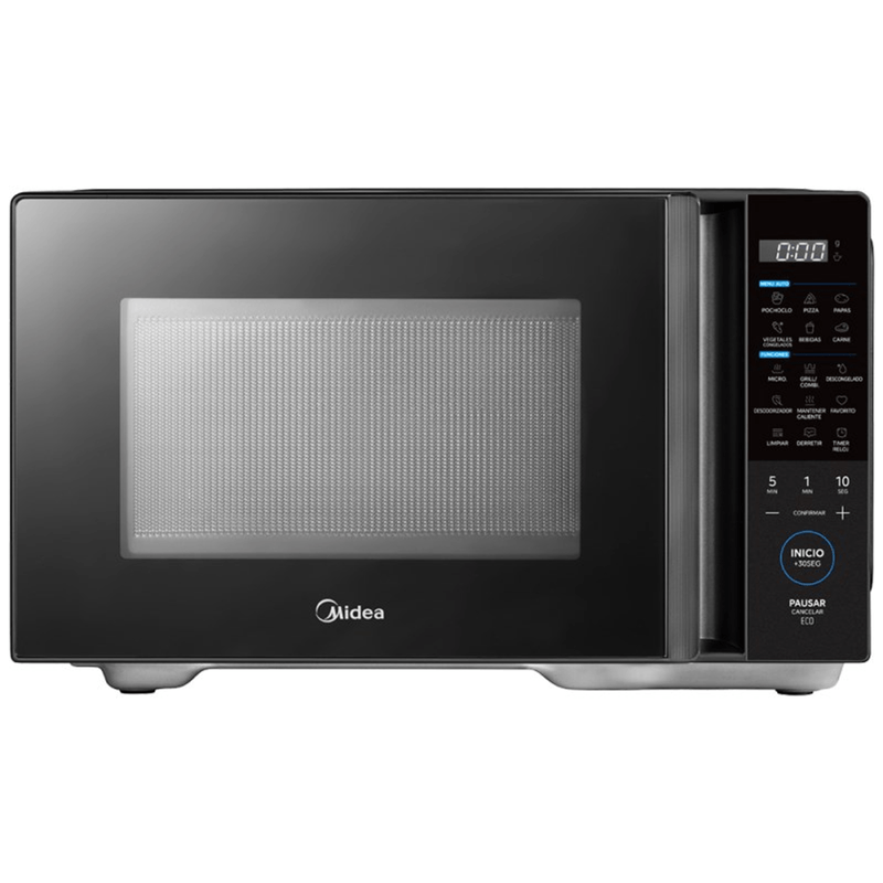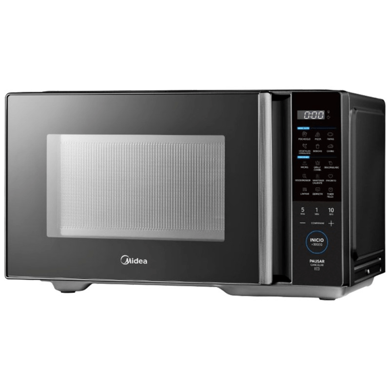 MICROONDAS 29 EG128BAR1 900W DIGITAL NEGRO MIDEA -Capacidad Neta 16 litros -Capacidad Bruta 29 litros -Potencia 900W -Color: Negro -Control Membrane -Funcion Grill -Display: Blanco -Eficiencia Energetica: B -Puerta manual -Dimensiones Packaging (WxDxH)mm 541*443*319mm -Dimesiones producto (WxDxH)mm 495*395*290mm -Accesorios Incluye: Plato de vidrio y Parrilla para Grill -8 men¦ºes automaticos -Funcion Favorito -Funcion mantener caliente -Capacidad bruta: 28 L -Capacidad neta: 16 L -Modelo DG125BAR1 -Garant¦_a fabricante 12 meses -Origen China