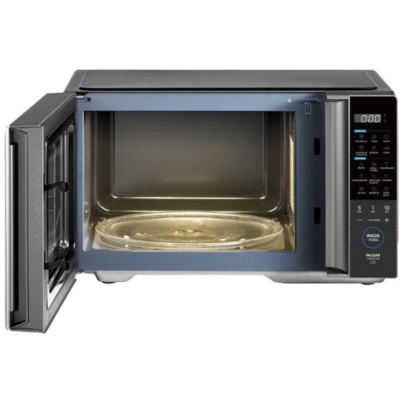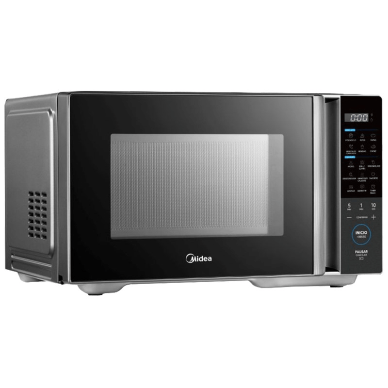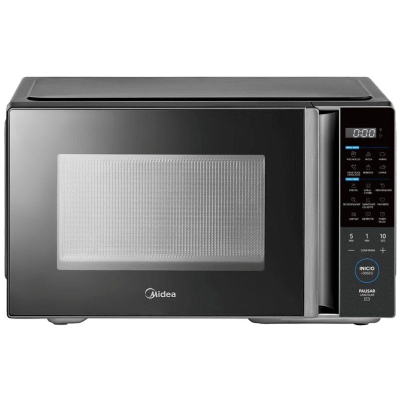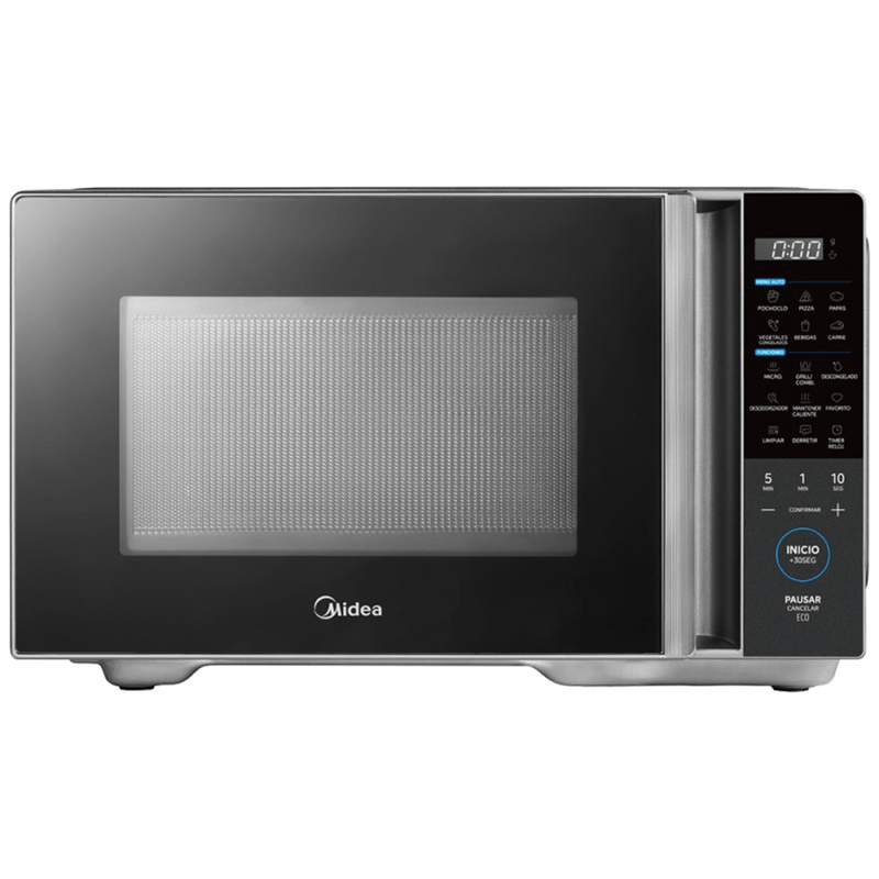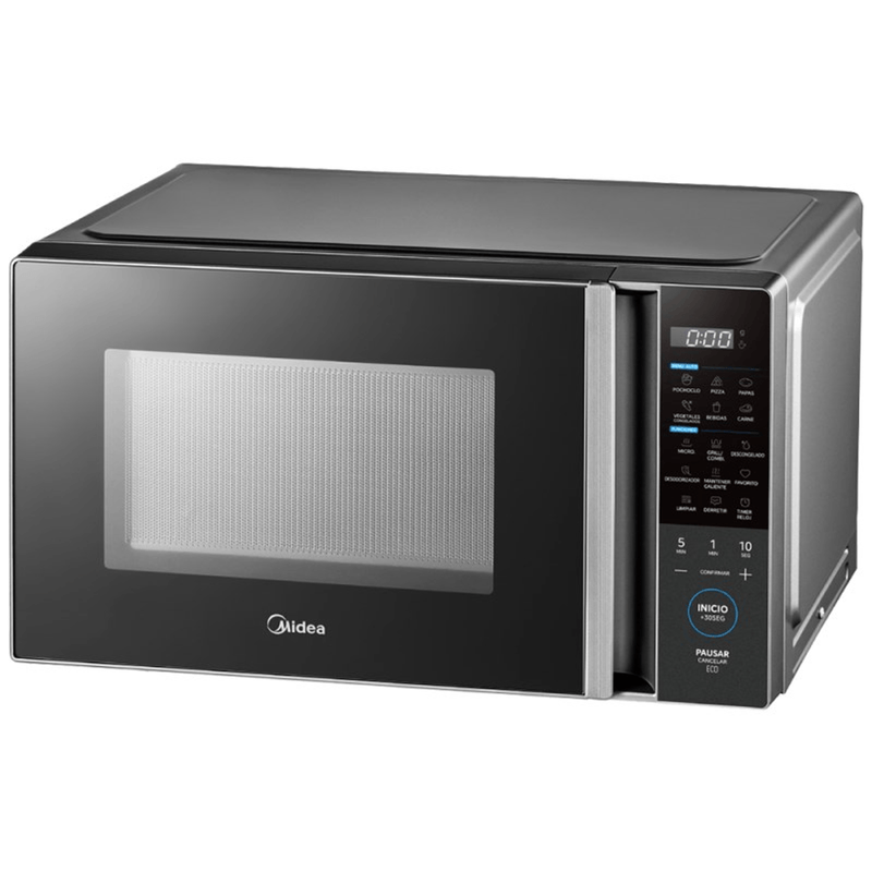 MICROONDAS 29 EG128GAR1 900W DIGITAL NEGRO MIDEA -Capacidad Neta 16 litros -Capacidad Bruta 29 litros -Potencia 900W -Color: Gris -Control Membrane -Funcion Grill -Display: Blanco -Eficiencia Energetica: B -Puerta manual -Dimensiones Packaging (WxDxH)mm 541*443*319mm -Dimesiones producto (WxDxH)mm 495*395*290mm -Accesorios Incluye: Plato de vidrio y Parrilla para Grill -8 men¦ºes automaticos -Funcion Favorito -Funcion mantener caliente -Capacidad bruta: 29 L -Capacidad neta: 16 L -Modelo DG125BAR1 -Garant¦_a fabricante 12 meses -Origen China