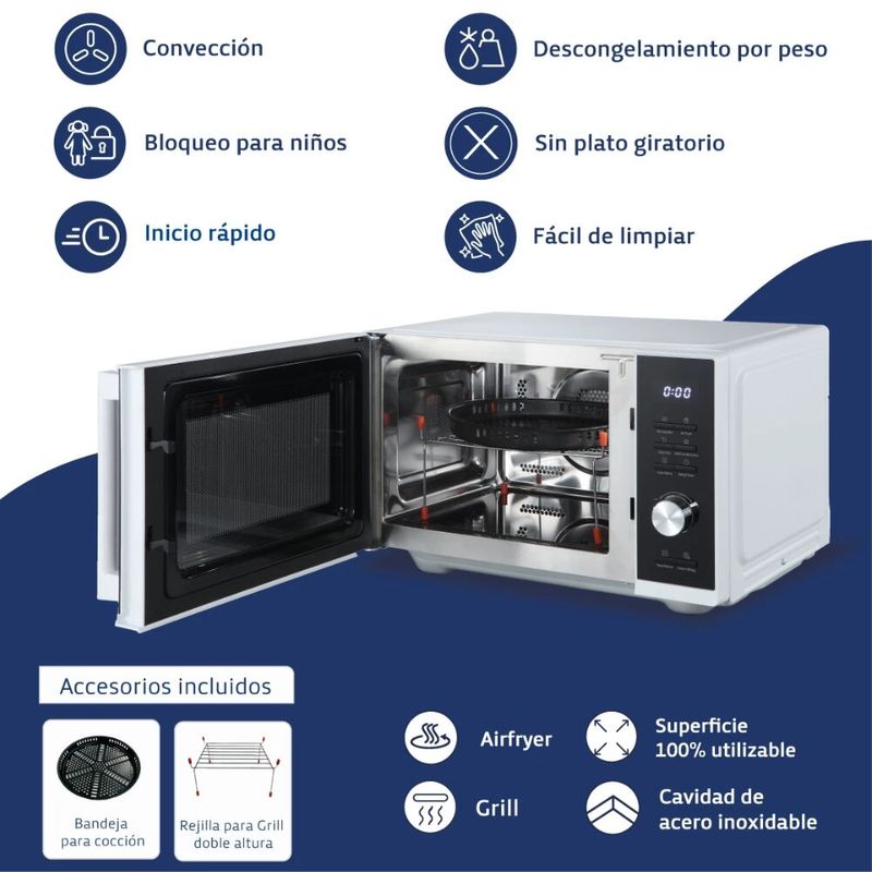 - Grill: Dorá y gratiná tus preparaciones favoritas.