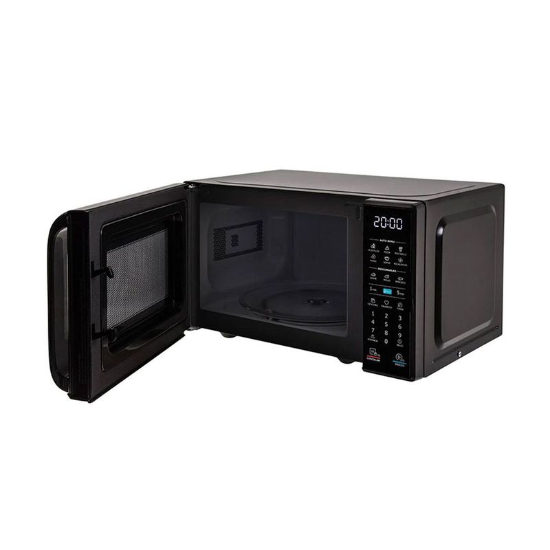 Con una capacidad de 20 litros, este microondas es ideal para hogares pequeños o para quienes necesitan calentar y cocinar porciones individuales. Su gabinete de acero inoxidable no solo le da un acabado premium y duradero, sino que también es fácil de limpiar. El display LED te permite visualizar y controlar las funciones de forma clara e intuitiva, mientras que su diseño en color negro se adapta perfectamente a cualquier estilo de cocina.