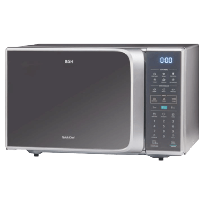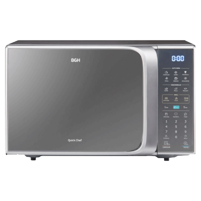 Microondas BGH modelo B120DS20 cuenta con una capacidad de 20 lts, monofunción digital, cuenta con puerta espejada, control digital, clase B la luz en el interior es led, cuenta con un modo de ahorro de energía (modo eco), plato de vidrio de 255 mm de diámetro y 700 watts de potencia.