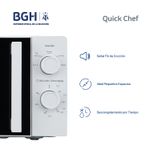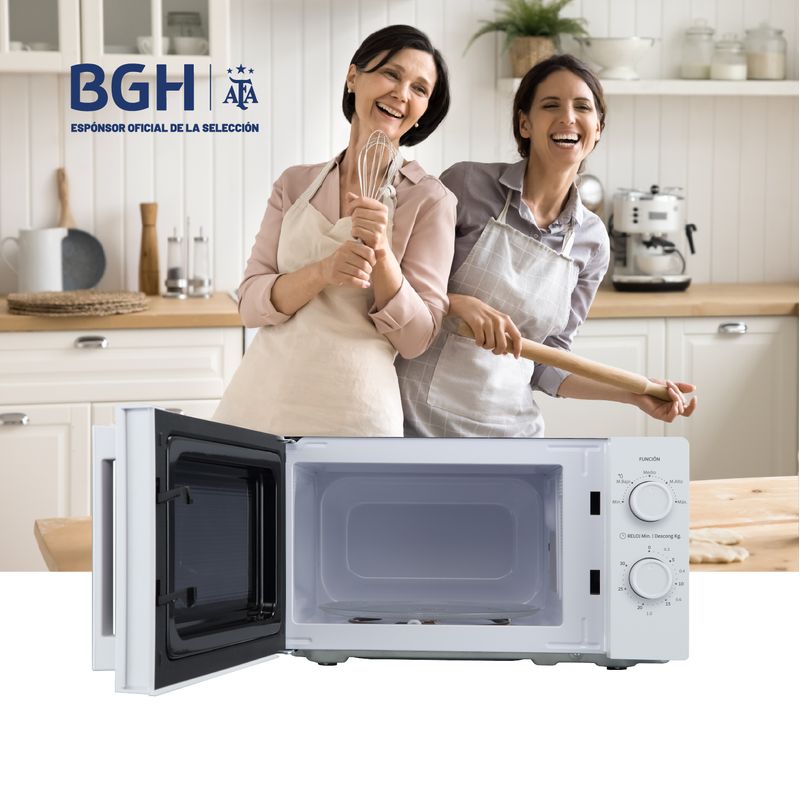 Perfecto para estudiantes, familias pequeñas o para sumar rapidez en tu rutina diaria, el microondas BGH es tu aliado para preparar platos de manera eficiente y segura.