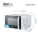 Calentá y descongelá tus comidas de manera rápida y práctica con el Microondas BGH Blanco de 18L.
