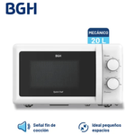 Por supuesto, acá van las especificaciones técnicas del Microondas BGH Quick Chef B120M20 (20 L, mecánico, blanco) sin hipervínculos: