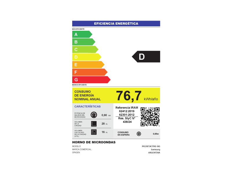 • Eficiencia energetica D (bajo Res. 438/2024)