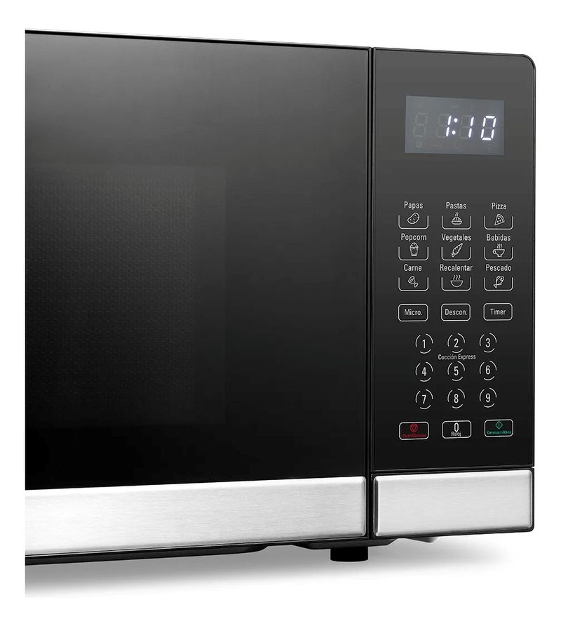 Equipado con una pantalla digital, facilita la selección de funciones y tiempos de cocción. La luz interior te permite visualizar el proceso de cocción, asegurando que tus platillos se calienten a la perfección. Además, su plato giratorio garantiza una distribución homogénea del calor, mejorando la calidad de tus comidas.