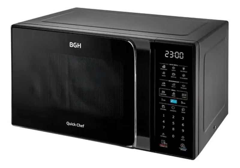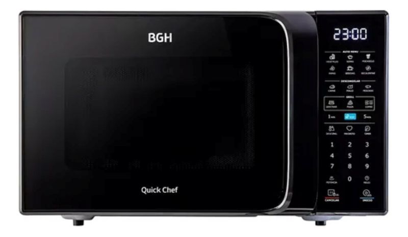 El Microondas Digital Bgh Quick Chef Grill de 23 litros es la solución ideal para quienes buscan eficiencia y versatilidad en la cocina. Con una potencia de 800W, este microondas no solo calienta, sino que también cuenta con función grill, permitiendo dorar y gratinar tus platillos favoritos con facilidad. Su diseño en color negro aporta un toque moderno y elegante, adaptándose a cualquier estilo de cocina.