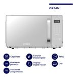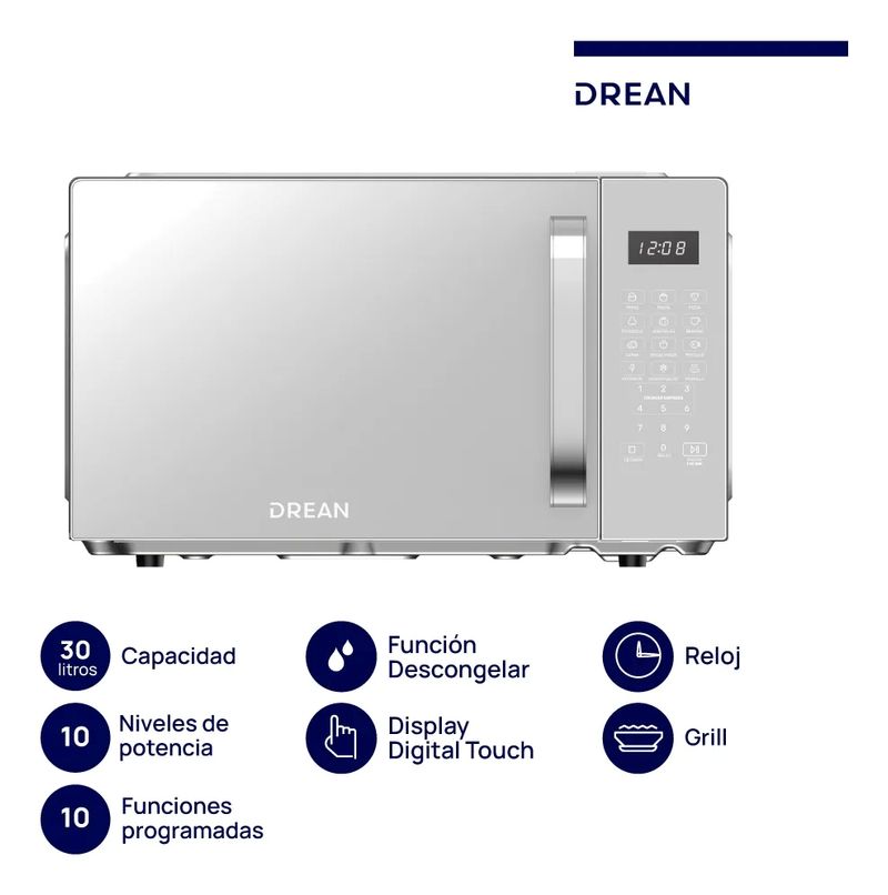El microondas digital con grill Drean HMD30ARSJ0 es la solución perfecta para quienes buscan funcionalidad y estilo en la cocina. Con una capacidad de 30 litros, este modelo en color gris se adapta a cualquier espacio, ofreciendo un diseño moderno y elegante. Su puerta espejada no solo aporta un toque sofisticado, sino que también permite una fácil visualización de los alimentos mientras se cocinan.