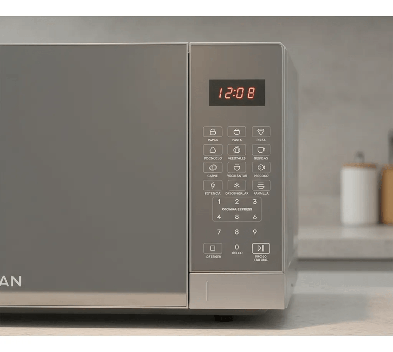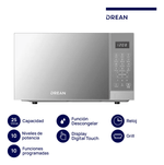 El Microondas Digital Con Grill 25 Litros Inoxidable Drean es la solución ideal para quienes buscan funcionalidad y estilo en la cocina. Con una capacidad de 25 litros, este microondas es perfecto para calentar, cocinar y gratinar tus platos favoritos. Su diseño en color gris y puerta espejada le otorgan un toque moderno que se adapta a cualquier ambiente.