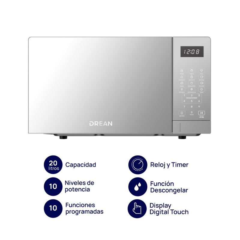 Microondas Digital Drean 20L Inox 1100W HMD20ARSB0
