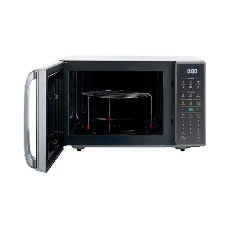 Caracteristicas: Capacidad total (comercial): 28L Tipo de producto: Bifunción digital Pintura de la cavidad: Gris Color exterior: Silver Terminación de la puerta: Espejado total (Mirror) Clase de eficiencia energética: B Control: Digital Display: Led Blanco Modo ahorro de energía (Modo ECO): Si Diámetro del plato de vidrio: 315 Luz interior: Led Voltage / Frequency: 220V/50Hz Consumo máximo (W): 1500 W Tipo de ficha: Ficha de 10A Potencia de entrada de microondas (W): 1500 W Potencia de salida de microondas (W): 900 W Potencia de Grill (W): 1000 Dimensiones (Ancho x Prof x Alto) mm: 520*435*326 Peso neto (Kg): 16