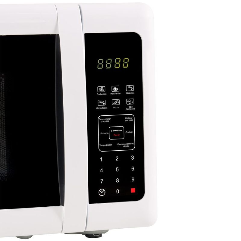 Su panel digital intuitivo ofrece 6 programas automáticos que facilitan la preparación de diversos platos, mientras que sus 10 niveles de potencia brindan un control preciso sobre el proceso de cocción. Además, cuenta con funciones adicionales como descongelado automático por peso, recordatorio sonoro y bloqueo de seguridad para niños, asegurando comodidad y tranquilidad en su uso diario. Características destacadas:
