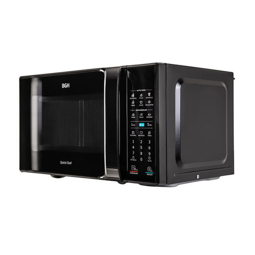 El Microondas BGH Eco Negro Digital 20 L (modelo B120DN20I) es una unidad monofuncional de 700 W de potencia, con control completamente digital, modo ECO que apaga el display para reducir consumo, funciones como descongelado automático por peso, inicio rápido y bloqueo de seguridad infantil; tiene capacidad de 20 litros, luz interior y diseño elegante en negro con panel moderno