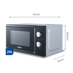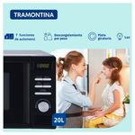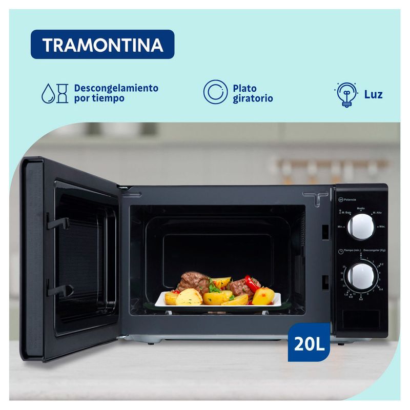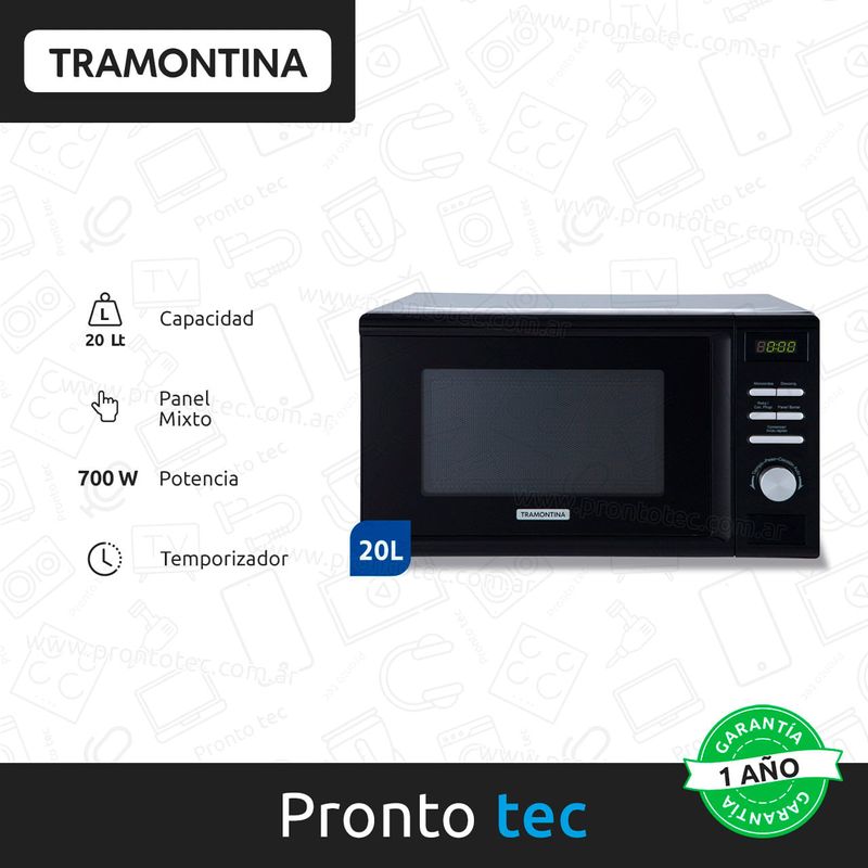 El microondas Tramontina Glass Cook tiene una capacidad de 20 litros y una potencia de 700 watts.