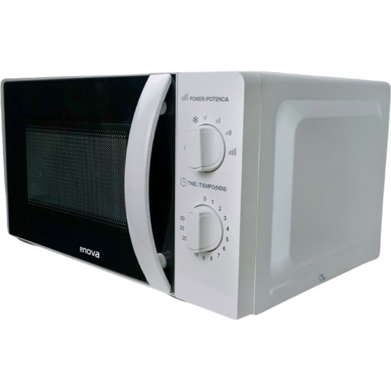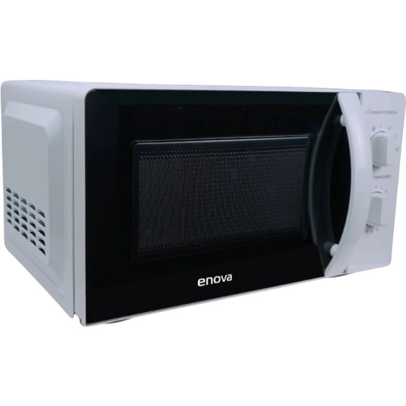 MICROONDAS ME2010-BL 20LITROS MECANICO BLANCO ENOVA -Capacidad (l) 20 litros -Puerta Vidrio transparente -Accesorios incluídos (1) Plato de vidrio -Tipo de panel Perilla -Cantidad de botones (1) Potencia y descongelación, (2) Temporizador -Temporizador -Función descongelar -Montaje De mesa -Potencia 1100 W -Alimentación de entrada 230 V @50 Hz -Dimensiones externas (An x Pr x Al) (mm) 24,3 x 44,6 x 35,5 cm -Peso del producto sin accesorios (kg) 9,4 kg -Color: Blanco -Modelo ME2010-BL -Garantía de fábrica 12 meses -País de origen Argentina