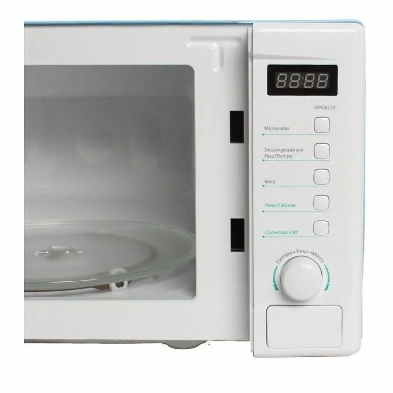 Este elegante microondas Philco MPD8620N en color blanco es perfecto para cualquier cocina moderna. Con una capacidad de 20 litros, es ideal para calentar, cocinar y descongelar rápidamente tus alimentos favoritos. La pantalla digital facilita la programación y el seguimiento del tiempo de cocción, mientras que la luz interior te permite ver el progreso de tus comidas. El plato giratorio de 255 mm asegura una cocción uniforme y los 5 niveles de potencia te permiten ajustar la intensidad según tus necesidades. Además, cuenta con 8 programas preestablecidos para facilitar aún más la preparación de tus platos. La función de descongelamiento automático por peso y tiempo, junto con el descongelamiento rápido, te ayudará a preparar tus alimentos de manera eficiente. La traba de seguridad para niños brinda tranquilidad a las familias con niños pequeños. Con un diseño compacto y dimensiones de 440 mm de ancho, 258 mm de altura y 345 mm de profundidad, este microondas Philco es una excelente adición a tu hogar.